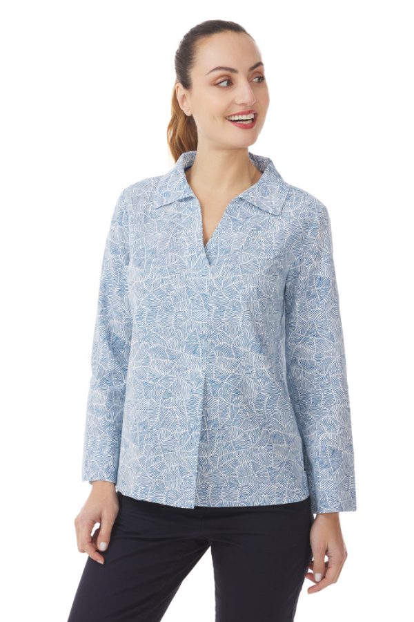 – Effet croisé sur le bas de la blouse à l’avant grâce à un pli plat.