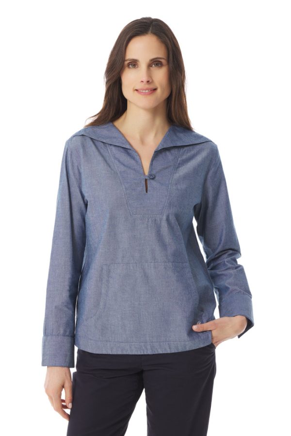 Affichez un look iodé avec cette blouse femme en chambray ! Son col marin boutonné fait écho à l’iconique vareuse de marin. Craquez pour sa matière en chambray, légère et respirante, qui se veut tendance grâce à son apparence chinée. Il est temps d’adopter cette blouse en chambray pour profiter des beaux jours avec style.