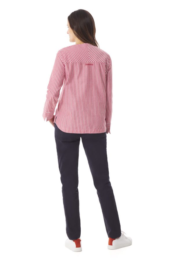 Cette blouse rayée en chambray remet le style marin au devant de la scène ! Equipée d’un col marin d’inspiration vareuse, elle vous accompagne en ville comme à la mer. C’est une blouse légère conçue dans un chambray doux et respirant, qui lui donne un aspect chiné indémodable.