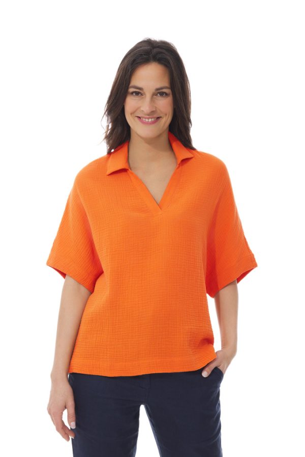 De la douceur avec la gaze de coton, une coupe inspirée de la vareuse et des manches chauve-souris pour un style décontracté. On aime cette création féminine qui apporte du confort et de la lumière à votre look. Une blouse parfaite pour vagabonder sous le soleil cet été !