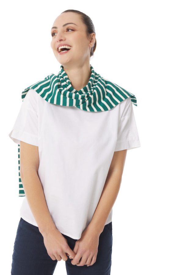 Echarpe, Foulard | Echarpe Rayée En Coton Vert Tennis | Mousqueton Accessoires