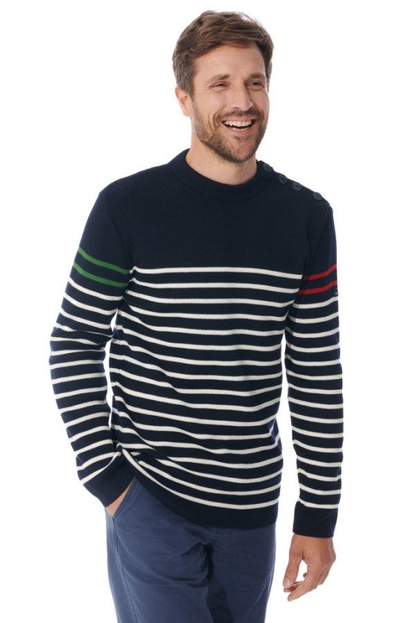 Sans aucun doute, le pull Tim batri vous fera adopter les pulls en laine ! Mélange de laine et d’acrylique, cette création apporte chaleur et confort pour aller doucement vers le printemps ! Craquez pour son jeu de rayures et ses coudières surpiquées qui donnent un coup d’éclat à cet intemporel du vestiaire marin.