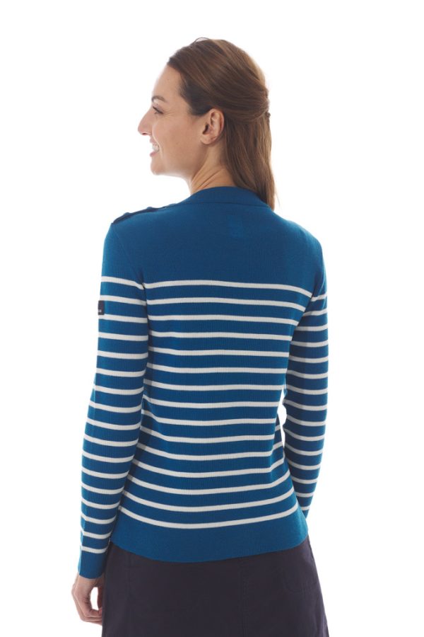 Le boutonnage sur l’épaule gauche est fidèle au véritable pull marin.