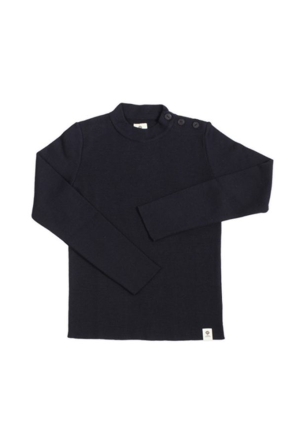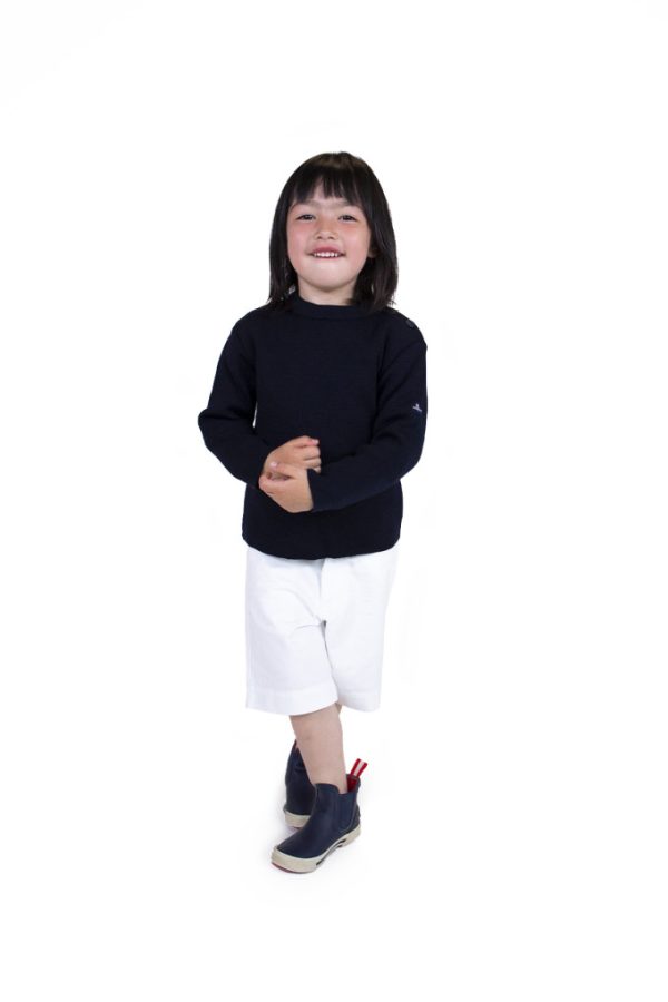 De couleur unie, ce pull enfant donne un authentique look de petit mousse breton à la manœuvre.