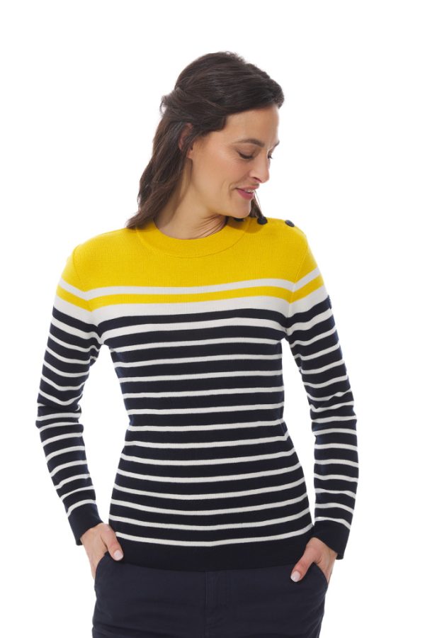 Pull marin femme rayé 3 couleurs.