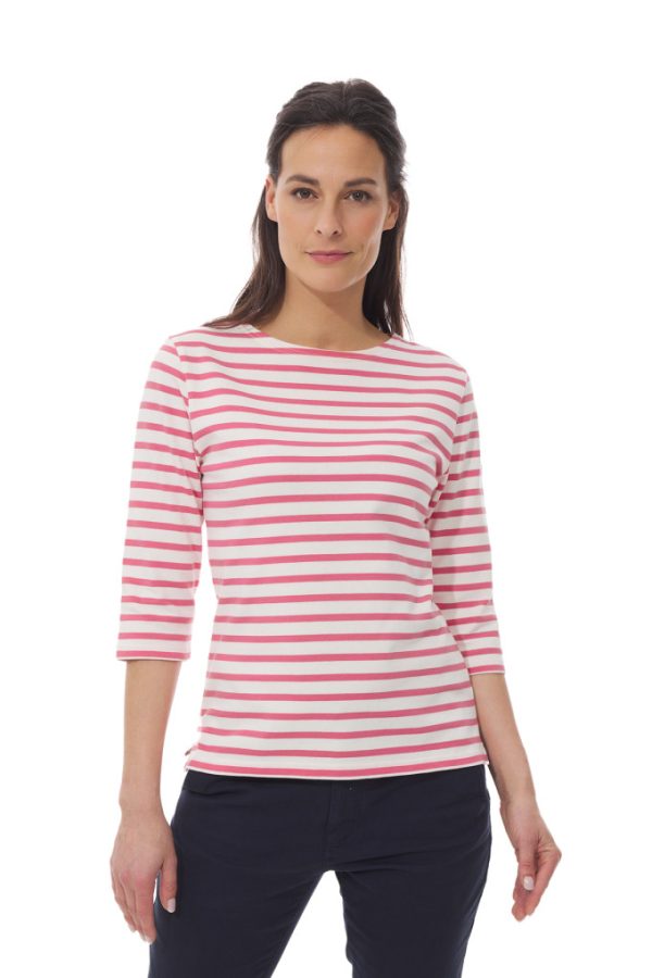 Qui a dit que la marinière était forcément ample et à manches longues ? Mousqueton revisite la marinière avec ce modèle en jersey de coton et à manches 3/4. Joliment ajustée et élégante, Marina se porte très bien sur une jupe ou un pantalon.