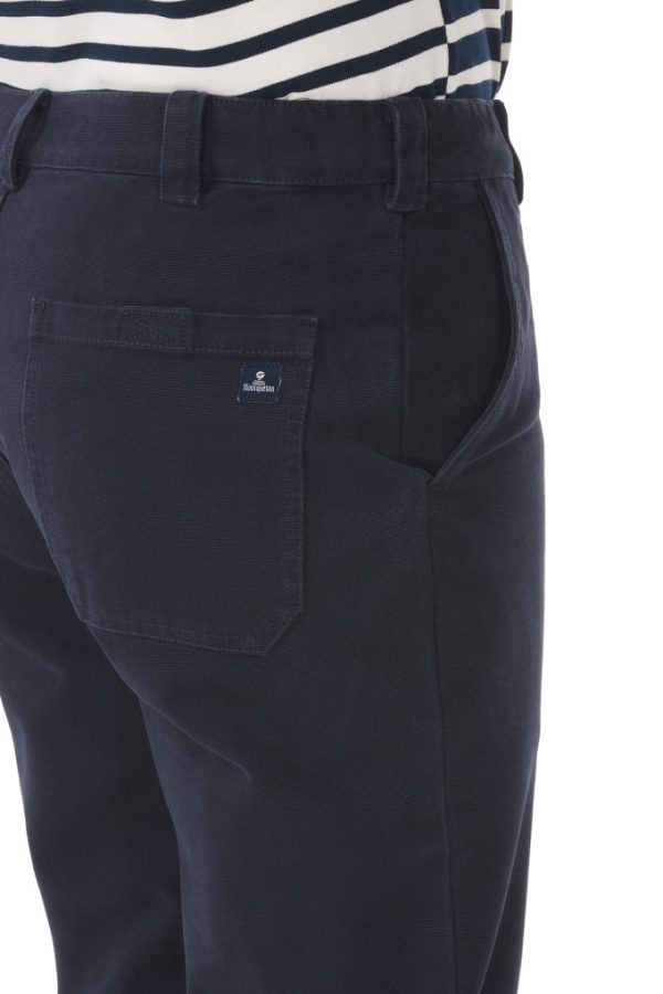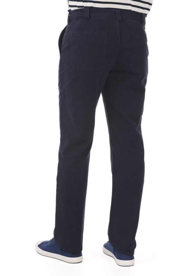 Voilà un pantalon homme qui va ravir les passionnés de la mer avec sa robustesse ! Fabriqué à partir de la même toile que les traditionnelles vareuses, ce pantalon est un indispensable du vestiaire marin. Côté pratique, sa taille élastiquée apporte du confort au porter. Grâce à sa teinture pigmentaire qui lui donne un effet délavé, ce pantalon en toile homme est parfait pour un look traditionnel et authentique.