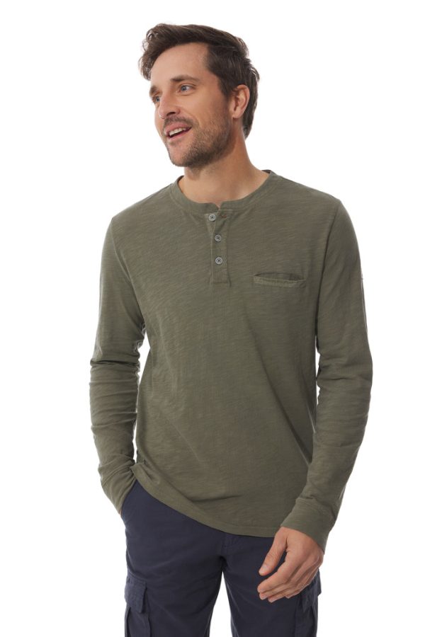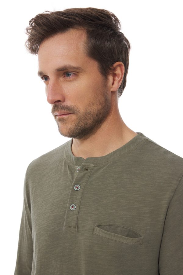 T-shirt homme à manches longues et col tunisien