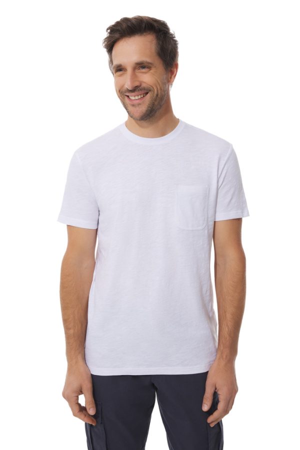 Craquez pour le t-shirt manches courtes homme en jersey flammé de coton bio. Ce basique affiche une pointe d’originalité par le joli relief de sa matière et sa poche poitrine. A porter avec un bermuda en toile pour un look casual décontracté.