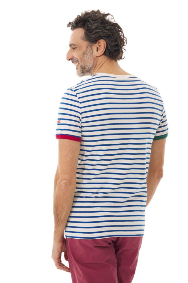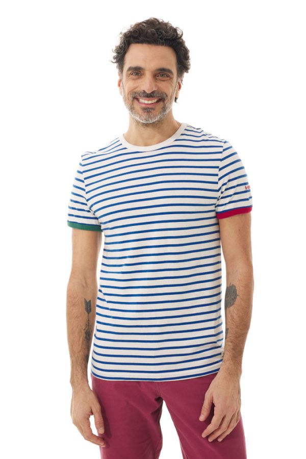 Tous en mer avec ce t-shirt rayé homme « bâbord-tribord » en coton bio ! Voguez vers des looks légers et iodés cette saison avec cette création originale. Fabriqué en coton biologique, il est adapté pour les beaux jours. En plus de son code couleur aux manches, ce t-shirt rayé vous offre une coupe slim et des manches courtes pour un style tendance.