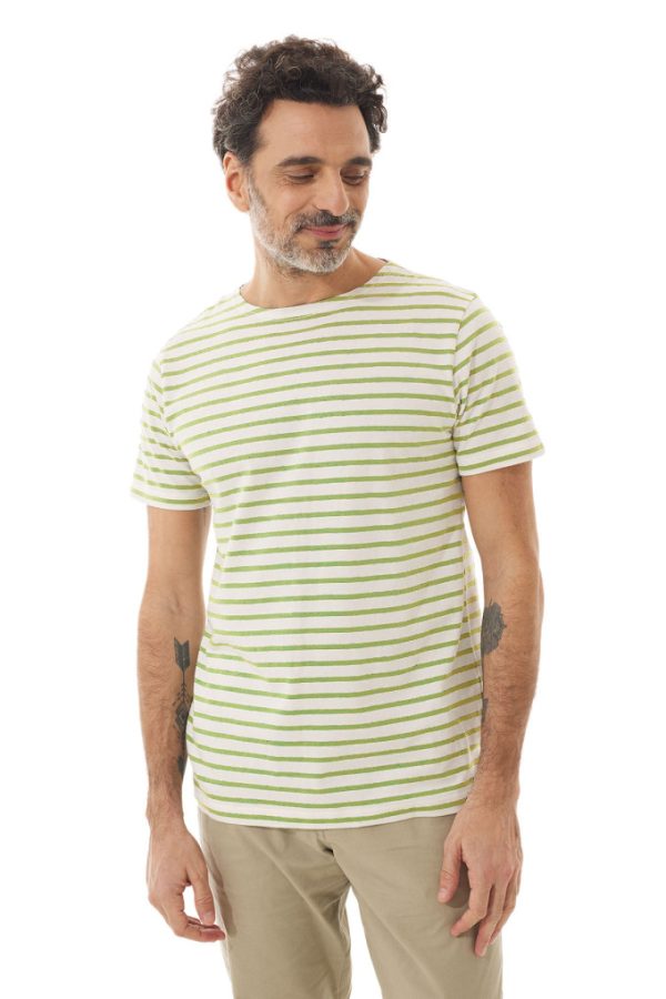 Polo, T-Shirt | T-shirt Rayé Manches Courtes Vert Clair | Mousqueton Homme