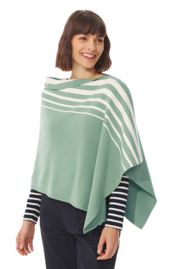 Poncho | Poncho Rayé Vert Opale | Mousqueton Femme