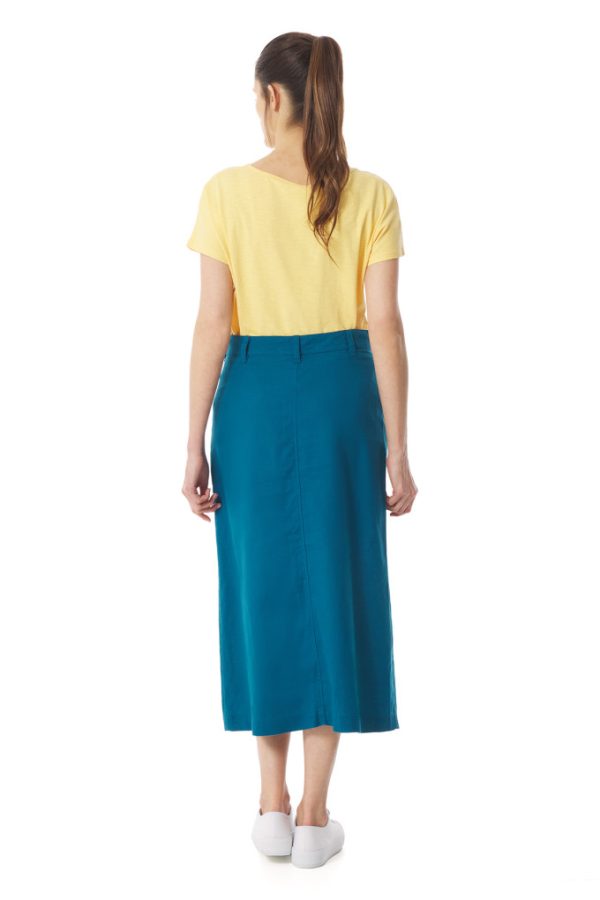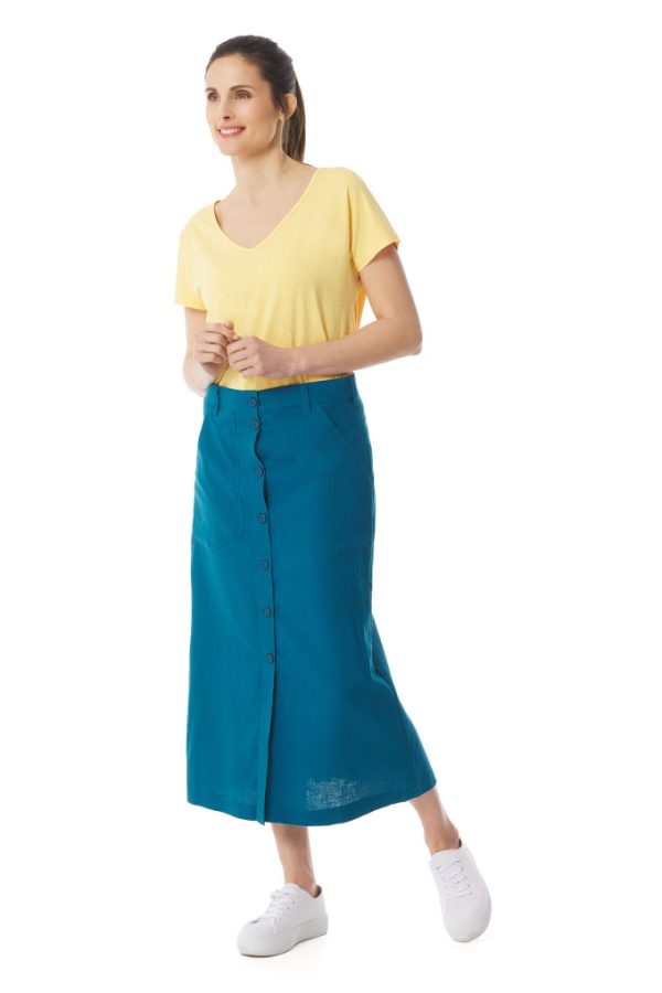 Craquez pour cette jupe longue en ramie ! Equipée de grandes poches et boutonnée à l’avant, elle se veut à la fois pratique et tendance. La simplicité de cette jupe longue boutonnée s’accorde à merveille aux rayures d’un t-shirt léger. Petit plus : sa matière en ramie et en coton, solide et respirante, apporte un look naturel au vêtement.