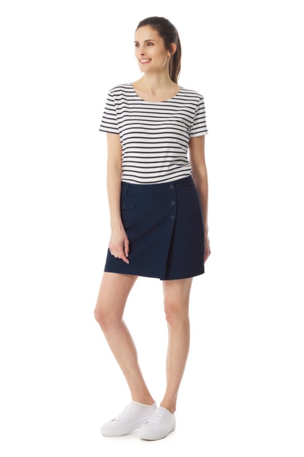 Conseil look : Associez cette jupe short avec la marinière Marina ou le t-shirt rayé Kelen pour un look marin plein de fraîcheur !