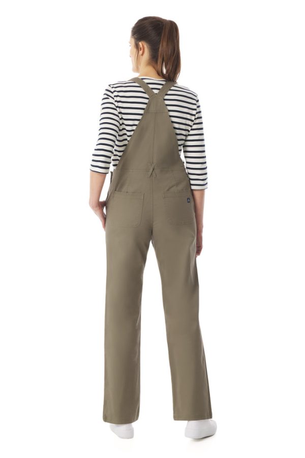 Coupe salopette avec tablier ajustable, jambes longues droites.