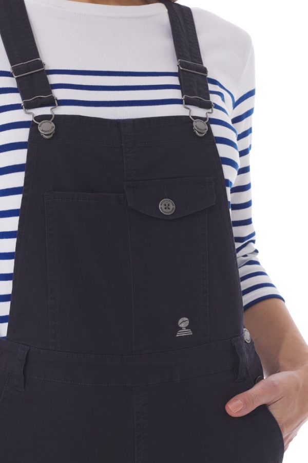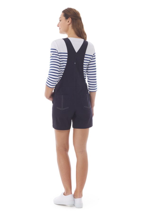 Salopette short à la coupe courte et droite. Tablier ajustable.