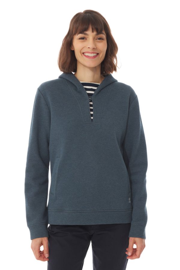 Le sweat à capuche est parfait pour allier confort et style cet hiver. Conçu en maille thermo interlock, il assure chaleur et douceur. Ce sweat chaud décliné dans des coloris chinés évoque le style marin avec son col vareuse boutonné.