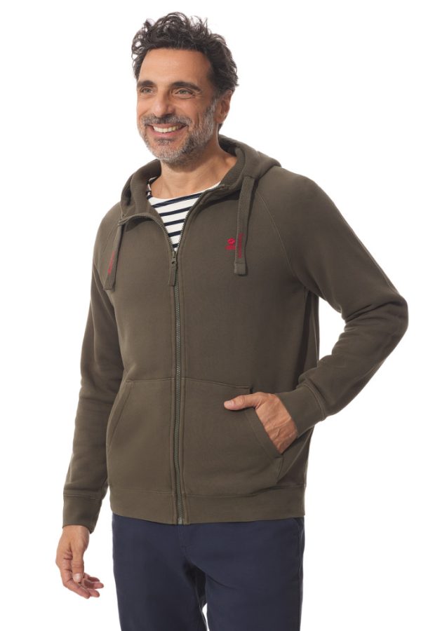 Sweat | Sweat Zippé à Capuche Vert Kaki | Mousqueton Homme