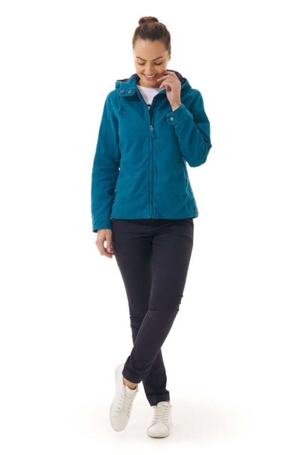 Protectrice et féminine, la veste en toile Fiona vous abrite du vent et des embruns avec son col montant fermé par pressions. Clin d’œil marin dans la doublure de la capuche avec les mouettes. Véritable partenaire de vos sorties nature, Fiona vous est ici proposée dans des teintes unies.