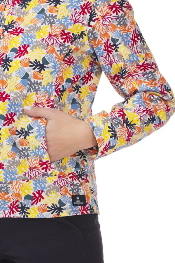Veste, Caban, Blouson | Veste à Capuche En Toile Motifs Corail | Mousqueton Femme
