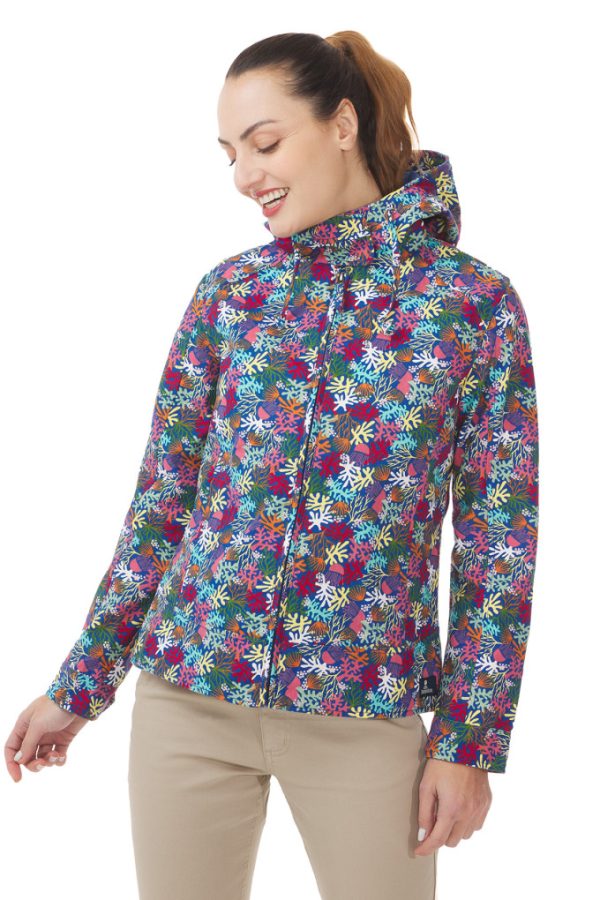Découvrez notre veste à capuche femme ! Sa matière en toile de vareuse est coupe-vent et déperlante. Ses motifs d’inspiration aquatique ajoutent de la couleur à vos tenues. Vous apprécierez aussi cette veste en toile femme pour sa capuche réglable et sa coupe féminine.