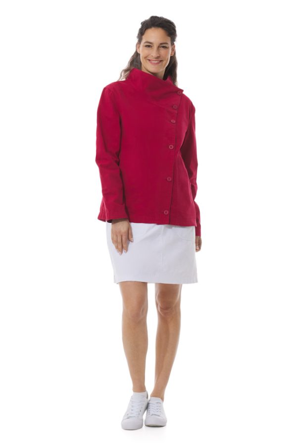 Yaneg, c’est la veste légère qui vous accompagne vers les beaux jours ! Un grand col montant asymétrique, une belle coupe féminine évasée et un boutonnage décalé, cette nouveauté va vous plaire. Col à porter bien remonté pour montrer sa coupe en biais ou bien ouvert et il se posera joliment sur les épaules.