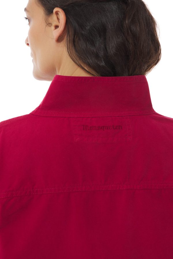 Veste non doublée femme au grand col boutonné.